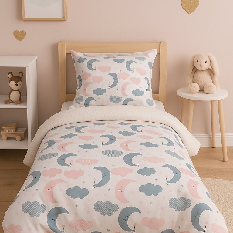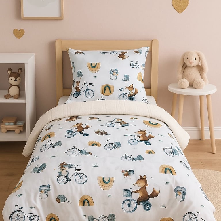 Parure de lit en coton naturel, douce et respirante, ornée d’imprimés tendance pour apporter confort et style à votre chambre.